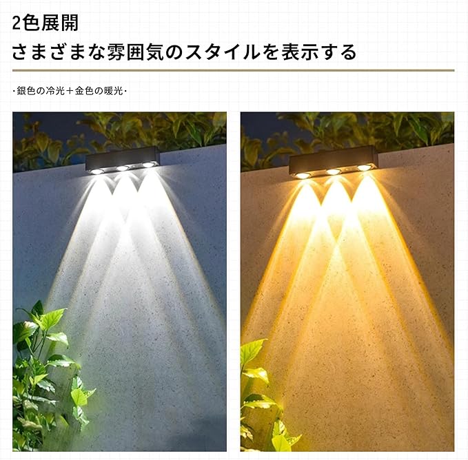 ソーラー 屋外 フェンスライト ガーデンライト LED ソーラー 表札灯 表示灯 玄関灯 門柱灯ソーラー式 取付簡単 庭 階段 通路 バックヤード 玄関等に適用 (3つの光/暖かい白, 1個セット)