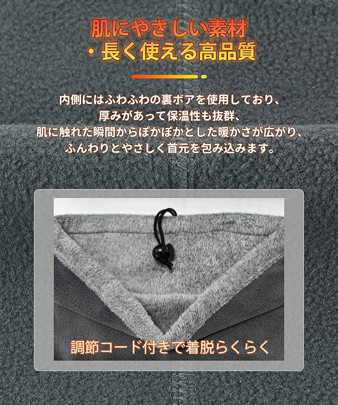 [AOY] 【360 首元 軽くて暖かい!】ネックウォーマー ネックガード 冬 極めた暖かさ 防寒ネックウォーマー 調節コード付き ネック ゲーター スポーツ 通勤 通学 自転車 バイク スキー スノボ スポーツ