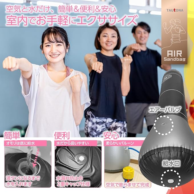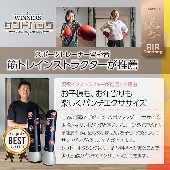 【フィットネストレーナー推薦・説明書付】 (TAUTONA) サンドバッグ パンチングマシーン 自宅用 エクササイズ ストレス解消 補修シール付き 全年齢対象