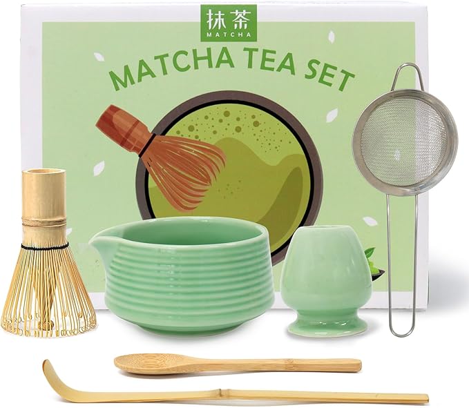 Valuetom抹茶 セット 茶道セット6点 ( 片口茶碗、茶筅、茶杓、茶筅立て、抹茶スプーン、茶漉し )茶道具抹茶ラテを作り茶道を練習したりする初心者 母 父 先輩 先生誕生日 贈り物