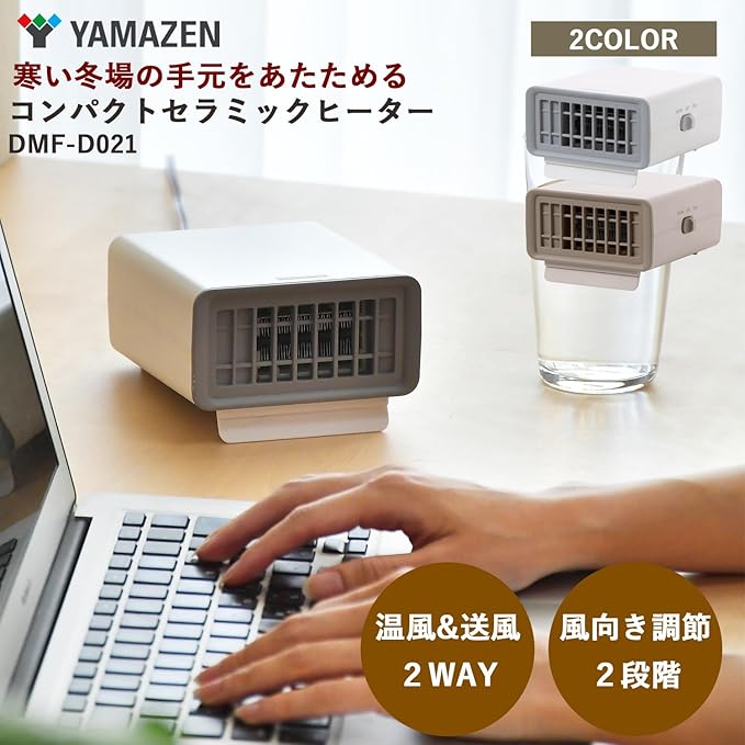 [山善] ヒーター セラミックヒーター セラミックファンヒーター コンパクト 速暖 ミニ 手元 ヒーター 2WAY (温風/送風) 小型 デスクヒーター スタンド付き ホワイト DMF-D021(W)
