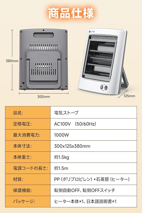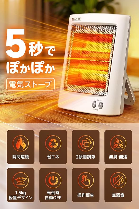 【簡単操作&耐久性抜群】操作はスイッチ二つで完了、面倒な設定は不要です。耐久性のある セラミックヒーター で、長期間安心して使えます。 コンパクト なデザインながら足元から部屋全体までじんわり温め、寒い季節でも快適な空間を提供。省エネ・安全・便利が揃った、毎日使いたくなる 電気ストーブ です。