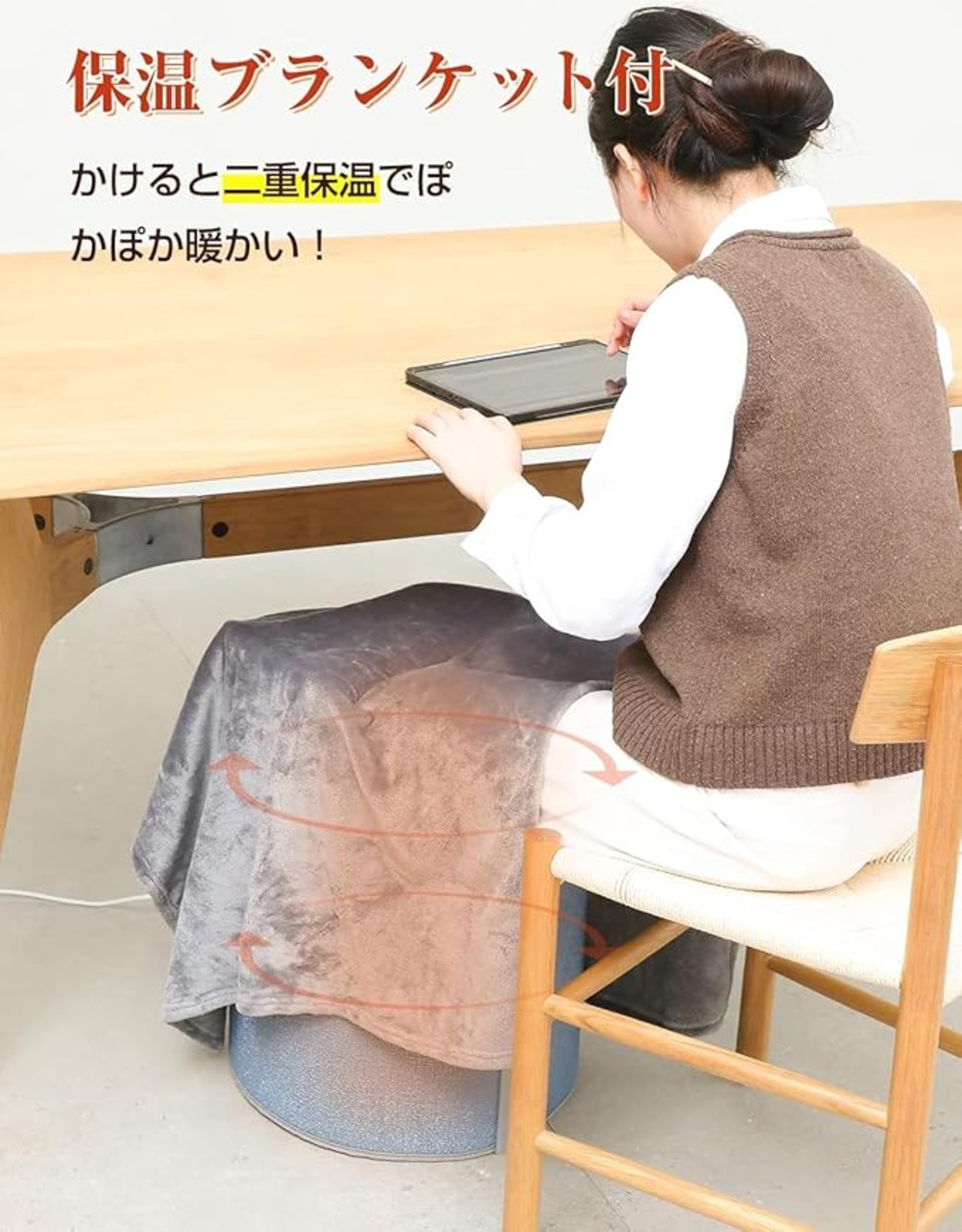 【デザイン突破・360 全方位温風加熱・一台二役】温風ヒーターの速暖と従来のパネルヒーターの広い面積を結合し、2025年冬最新のデザインが誕生!電源を入れるとすぐに温風が吹き出し、円柱型の保温マットと合わせて、温風が循環し、360 全方位から足を温めます。付属品のブランケットと使用すると、熱を逃がせず、更に暖かい!また、温風ヒーターは取り外すことができますので、足を取り付けると、デスクの上に置いて両手を温めることもできます