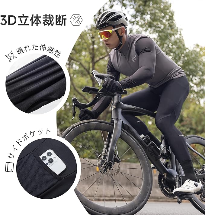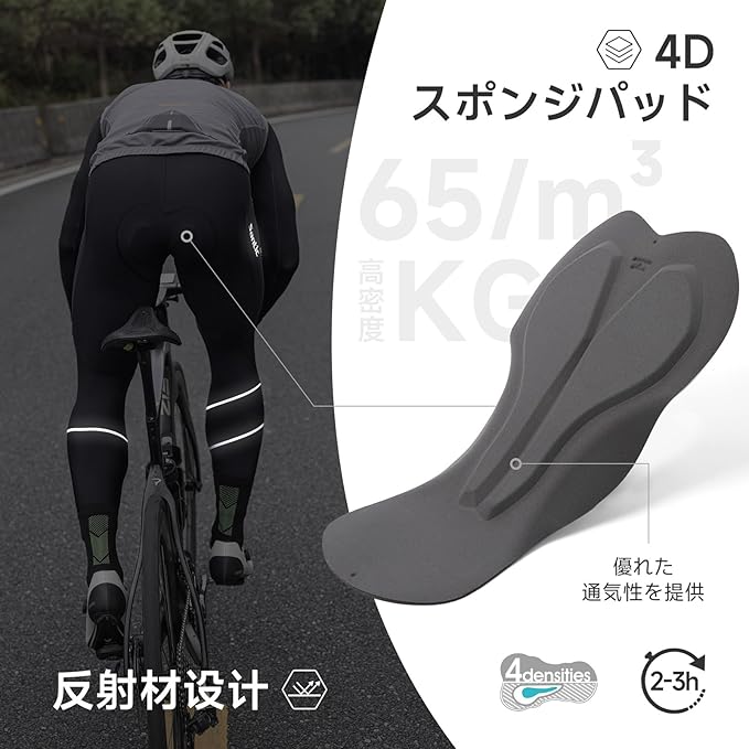 [サンティック] メンズ サイクルパンツ 裏起毛 秋冬 サイクリング サイクルウェア 自転車パンツ 4Dパッド 保温 防風 通気 弾力