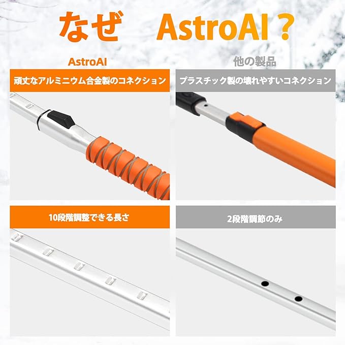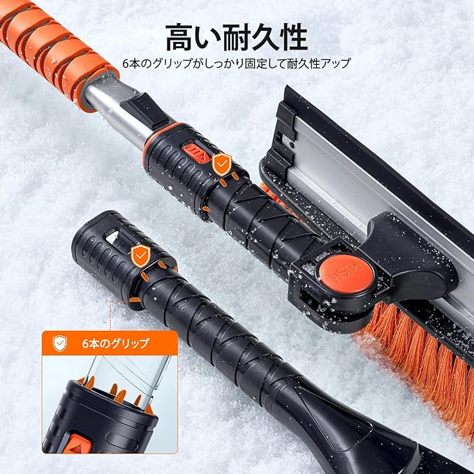 AstroAI 131-158cm スノーブラシ 車 除雪ブラシ 雪かき 6 in 1 多機能 車用スノーブラシ アイススクレーパー 伸縮式アルミハンドル 雪対策 10段階調整可能 270 回転 自動車 トラック SUVに対応 スクイージ付 (オレンジ, M)