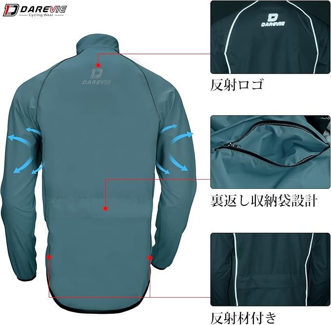 [Darevie] サイクルジャケット サイクル ウインドブレーカー 長袖 春夏秋冬用 メンズ [防風&撥水&UVカット] 自転車 ロードバイク服 アウトドアウェア スポーツ 収納便利バックポケット付き 通気 反射材 薄手 DVJ002