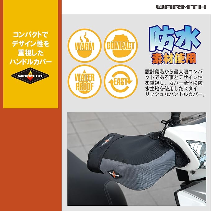 設計段階から最大限コンパクトである事とデザイン性を重視し、カバー全体に防水生地を使用したスタイリッシュなハンドルカバー。
