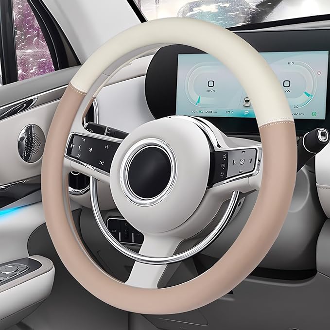 ZATOOTO ハンドルカバー バイカラー Sサイズ かわいい ステアリングカバー 軽自動車 おしゃれ ツートンカラー 普通車 適合多車種 タント ハスラー キャンバス ベージュ LY172-BE
