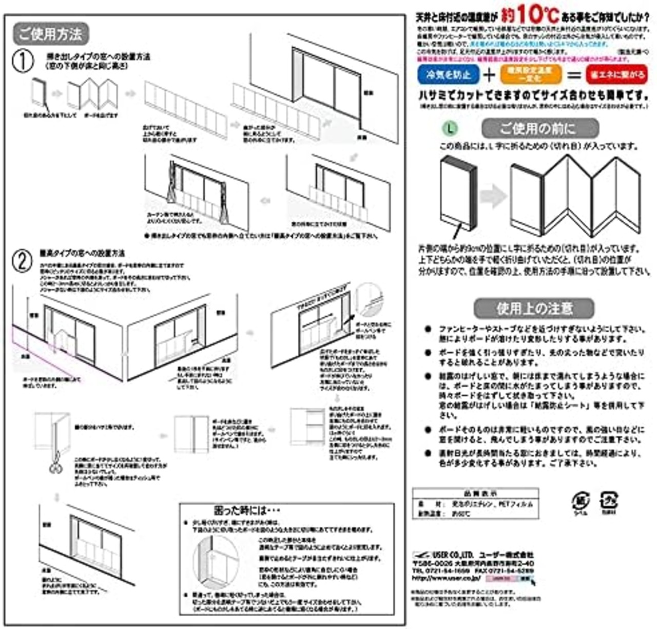 ユーザー(User) 窓際あったかボードL(ホワイトスノー)(Q925)断熱シート 窓際ボード 窓ガラス 断熱ボード 窓 冷気遮断 すきま風 対策 隙間風 暖房節約 窓ぎわあったか 窓に立てるボード 防寒 冷え対策 ヒーター あったかグッズ