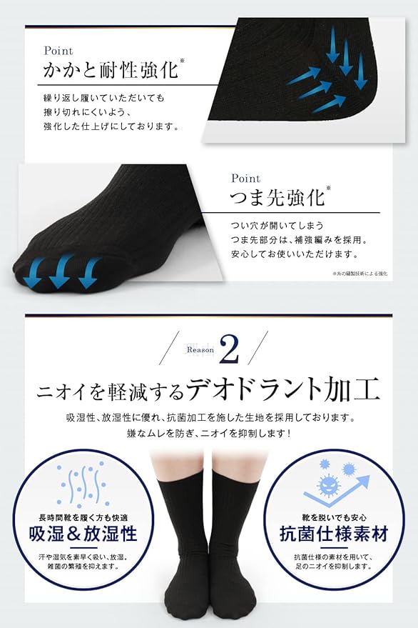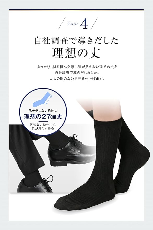 【高コスパ・リピート率断トツ】ビジネスシーンで求められる品質を手頃な価格で提供するため、某有名限定商品商品の製造も手掛ける工場と直接契約。中間コストをカットし、高品質ながらお求めやすい価格を実現しました。その結果、多くのお客様から高いリピート率をいただいております。品質とコスパを両立したこのソックスで、日常の足元を快適に。