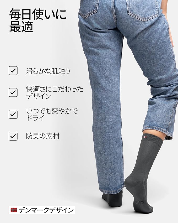 【デンマークデザイン】私たちは家族経営の企業です。このバンブーソックスはコペンハーゲンでデザインされ、品質と履き心地を最大限に高めるために最高級の素材を使用しています。n