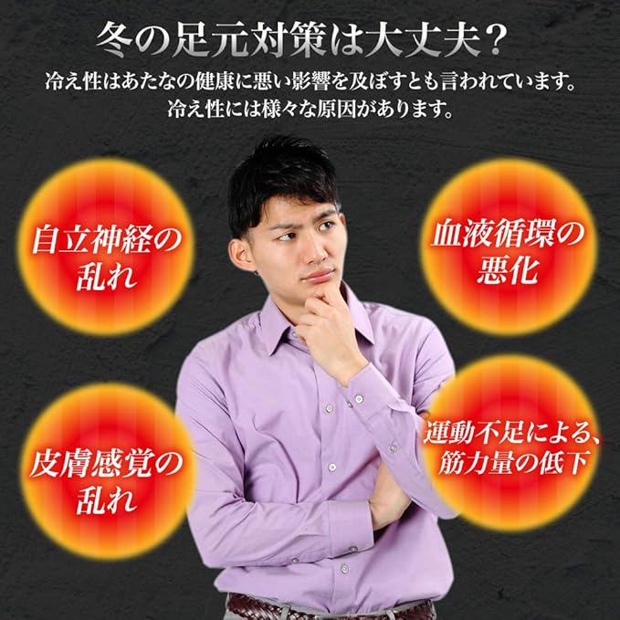 【ビジネスシーンでも使用可能!】 冬場の通勤や仕事中は、足の寒さが気になります。そんな方の為に、ビジネスシーンで使えるよう、無難な黒を用意しました!ハイソックスと同様の長さなので、寒さからしっかりあなたの足を守ります。
