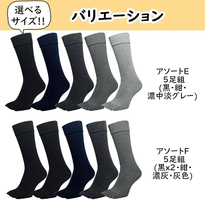 [アスカ] 5本指ソックス 旭化成消臭ROICA使用 クルー丈 メンズ
