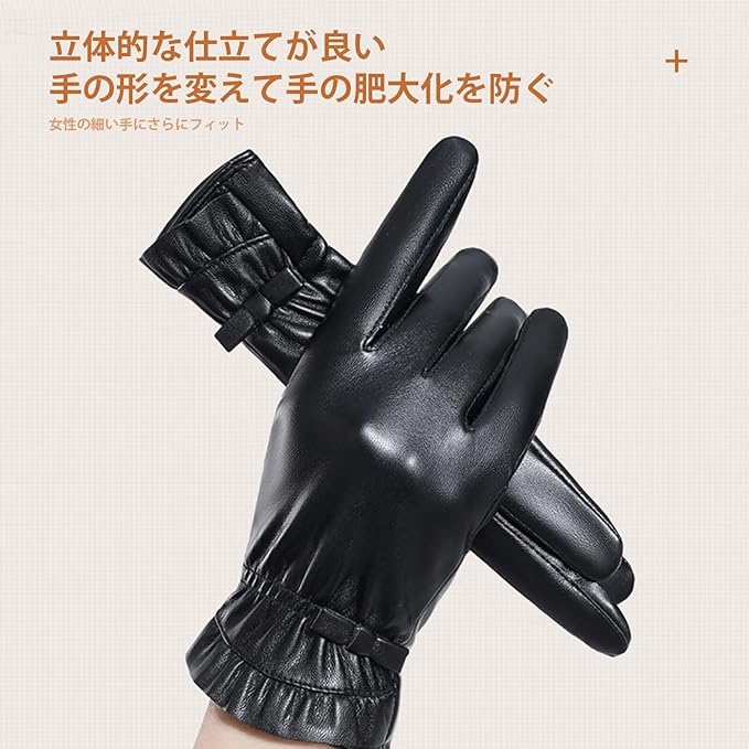 [LEZOOY] 革手袋 レディース 羊革 レザーグローブ 手袋 冬 防寒 防風 保温 裏起毛 柔らかい ちょうむすび付き手袋 女性 冬 タッチパネル対応 暖かい 通勤 通学 自転車 運転 ワンサイズ