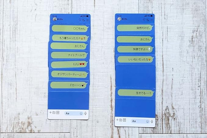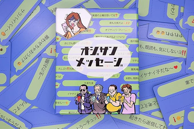 『オジサンメッセージ』とは、「おはよう~チュッ!」「ナンチャッテ★」などのワードを組み合わせ、あなただけの「おじさん構文」をつくり、女性役からの即ブロックを目指すボードゲームです。 収録されているオジサンワードは400種類以上!無限に近い組み合わせで、何度遊んでも楽しめる対戦型大喜利パーティーゲームです。 発売当初にTwitterで投稿されたツイートが4.3万いいねを記録。 めざましテレビでも取り上げられ話題となりました。メディアでも定期的に取り上げられ、最近ではTiktok・Instagramでもオジサンメッセージの投稿が100万回以上再生されるなど、SNSと相性が抜群の商品です。