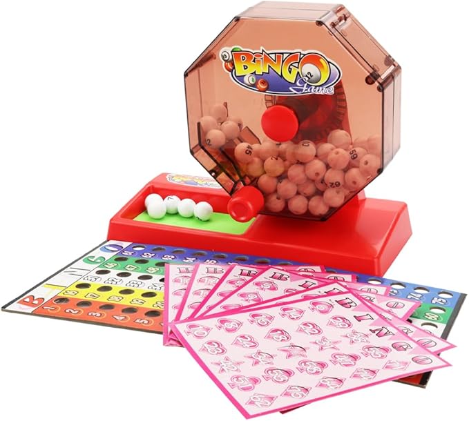 ビンゴゲームセット ビンゴマシーン ビンゴカード パーティゲーム 1-75番ボールx予備ボール5個xビンゴカード6枚xトレイ付コンパクトサイズ
