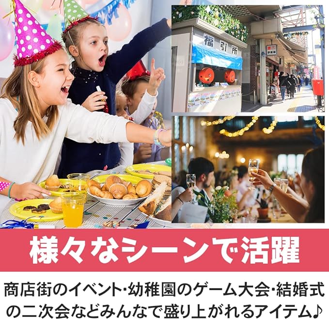 一面だけ中が見えるユニークな抽選箱です。ゲームに参加する人だけでなく、主催者やくじを引かない人もワクワクできるアイテム。シンプルな抽選箱に飽きた方にお勧めです。