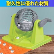 ビンゴセット(ハンドル式抽選器、カード、ボール、トレイ):マシーン:1基、カード:20枚、ボール:75個、プラスチック製、トレイはマシーンと一体型※モニターの環境により色の見え方に若干差が生じる場合がございます。
