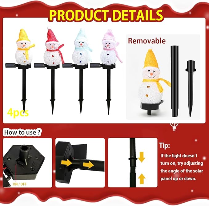 クリスマス ソーラーライト 雪だるま 4点入り クリスマス 飾り ガーデンライト 屋外 おしゃれ イルミネーションライト 埋め込み式 自動点灯 消灯 省エネ 照明飾り 置物 クリスマスグッズ christmas decorations outdoor
