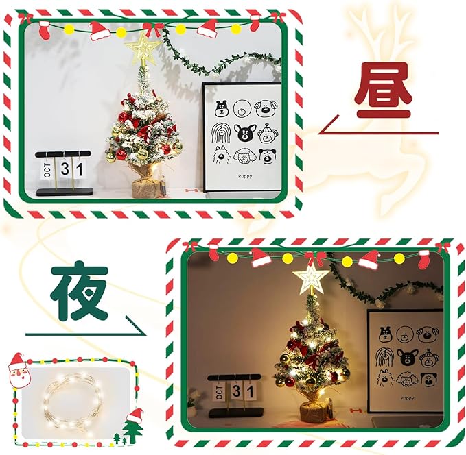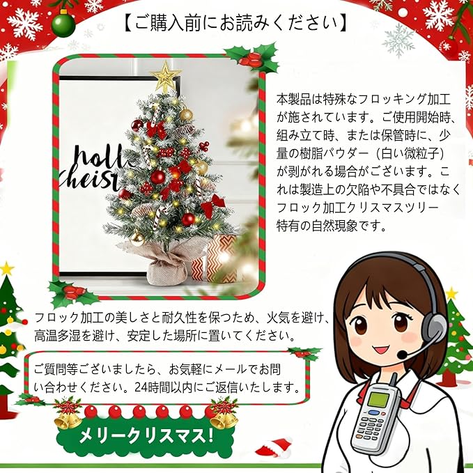 【サイズ】重量:約470グラム。サイズ:20*20*45cm。素材:フロッキング。かわいい、ぴったりサイズ 45cm。セット内容:ツリー、飾り、LEDライト電池ボックス(電池が付属していません)。