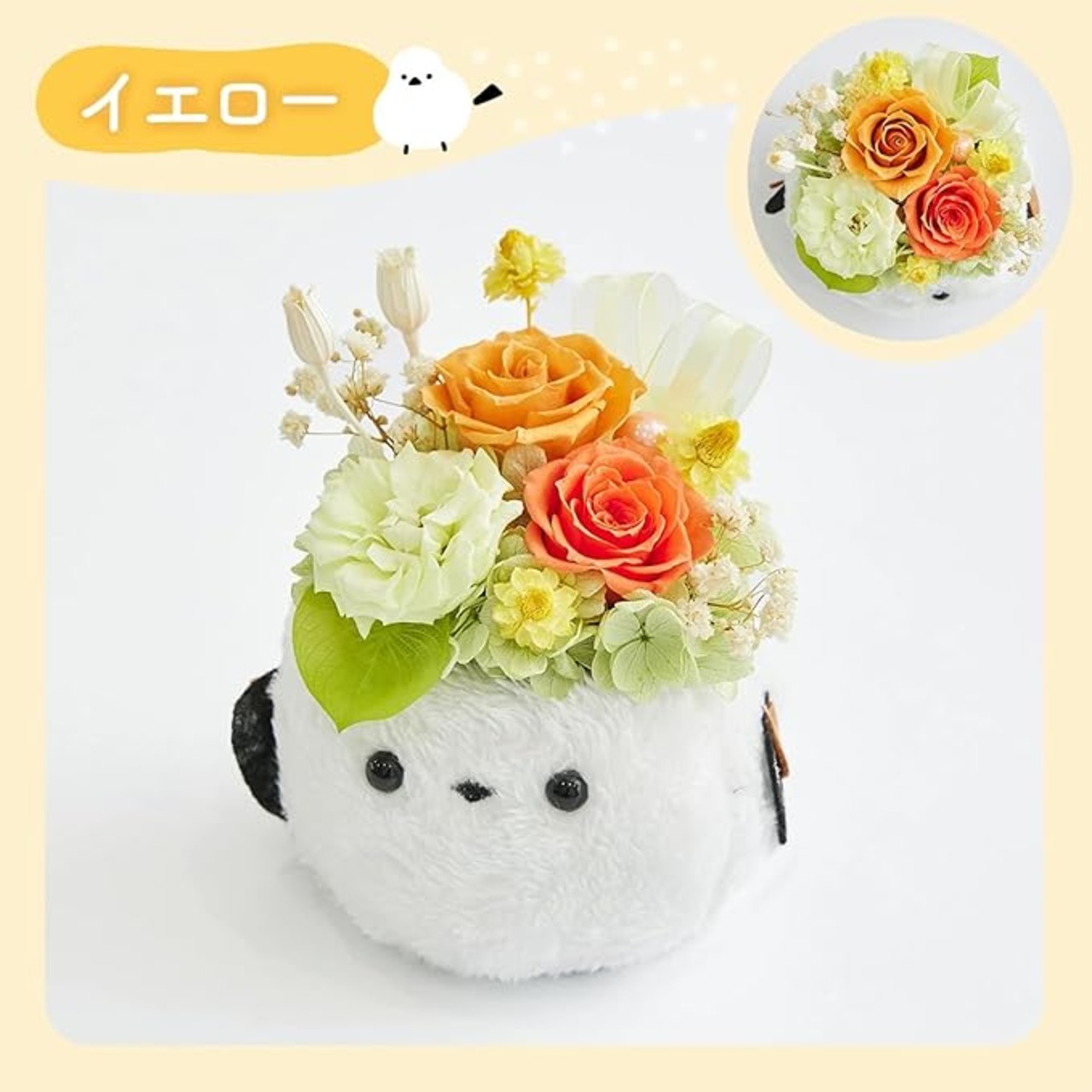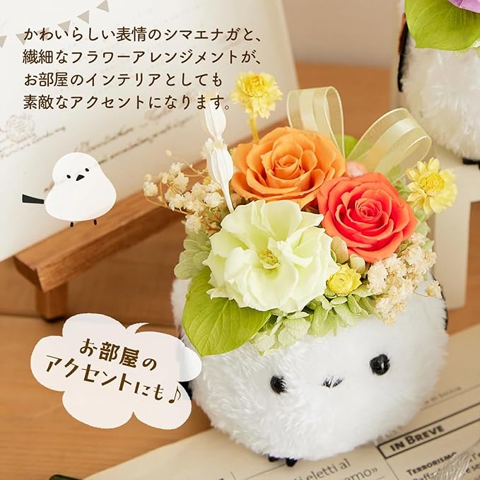 プリザーブドフラワー ふわふわ森のシマエナガ クリスマス プレゼント 枯れないバラ 結婚祝い 誕生日 プレゼント フラワーギフト (イエロー)