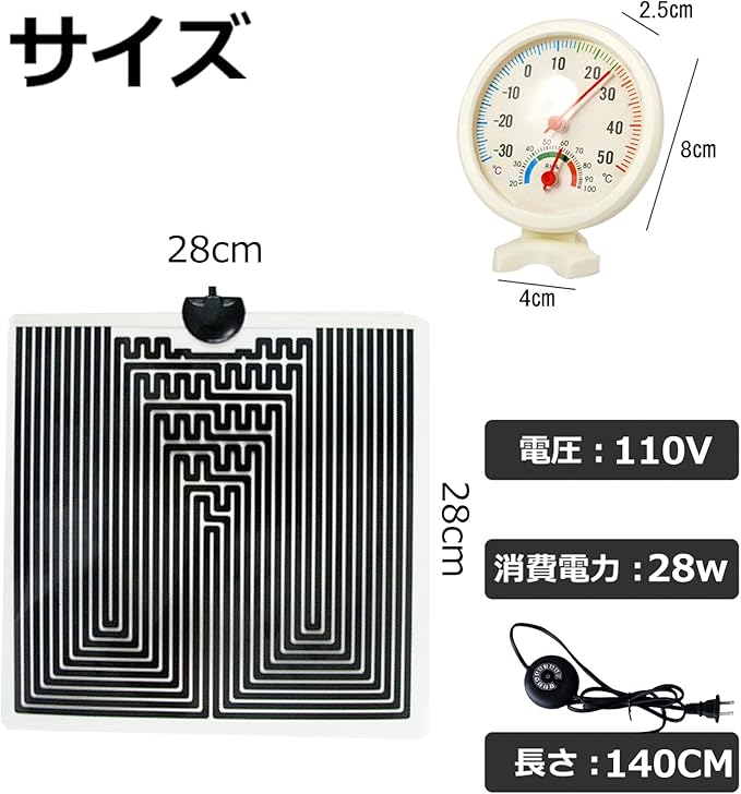 爬虫類ヒーター マット パネルヒーター シート 昆虫 小動物 ヤドカリ レオパ 飼育専用温湿度計付き 28*28cm 28W