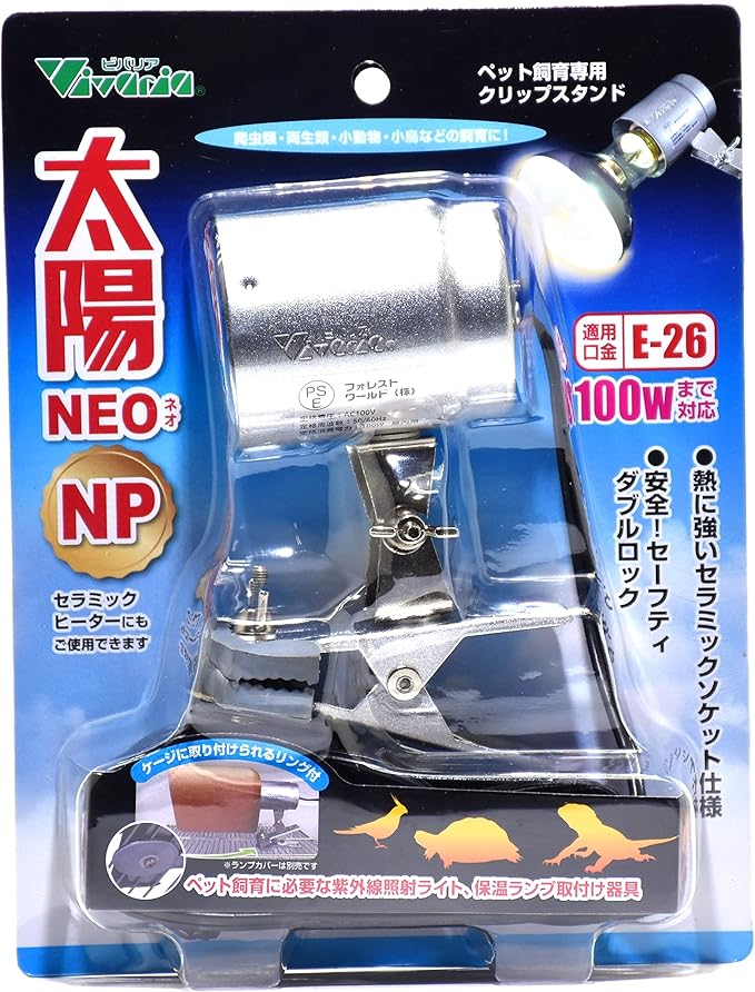 安全を考慮し、市販の爬虫類ゲージ用ランプステーにねじで固定できるセーフティダブルロックを採用。熱に強いセラミックソケット仕様。適用口金:E-26。消費電力100Wまでの白熱球、蛍光ランプ、セラミックヒーターに最適です。