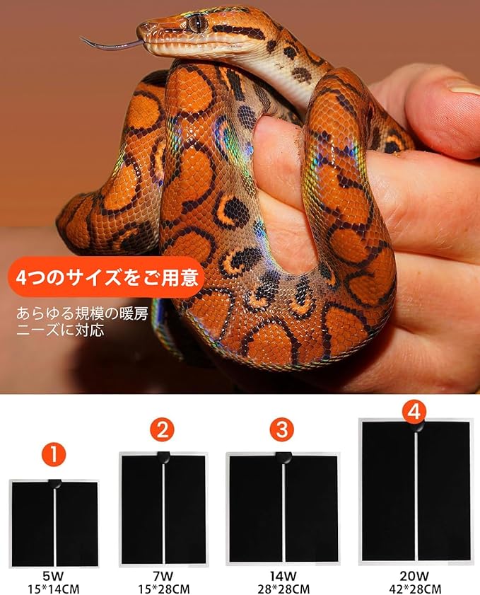 安全でバランスの取れた暖房: 爬虫類の暖房パッドは安全でバランスの取れた温度分布で、愛するペットや昆虫の繁殖に優しく暖かい熱を提供します。ご注意:爬虫類や昆虫をマットの上に直接置かないでください。
