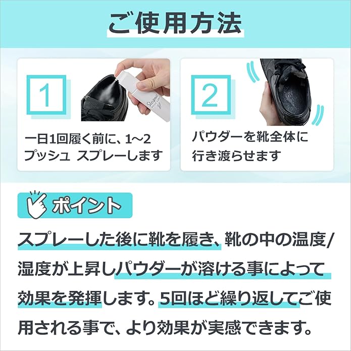 【使いやすいスプレー】効果が高いパウダーをスプレーに。従来品はスプーンで振りかけるのが手間でした。手も、玄関も汚さずワンプッシュ。