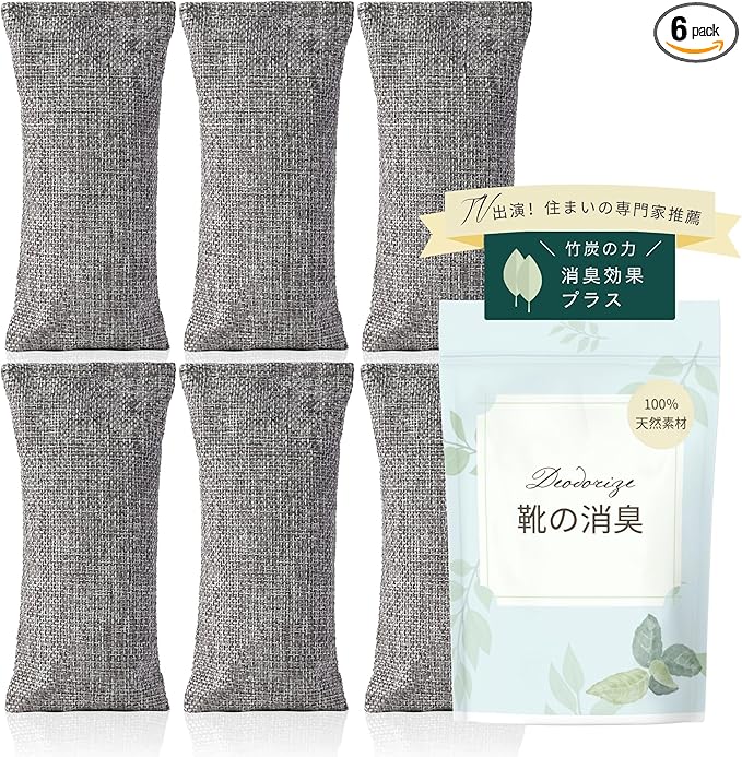 【TV出演住まいの専門家推薦】 靴 消臭 脱臭 除湿 竹炭 靴箱 消臭剤 繰り返し使える CEVOEL (グレー, 6個)