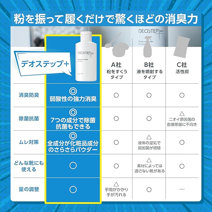 デオステップ+ 靴 消臭 パウダー 60g 足の匂い消し 【悪臭菌を99%除去・日本製・天然由来】 靴の匂い消し