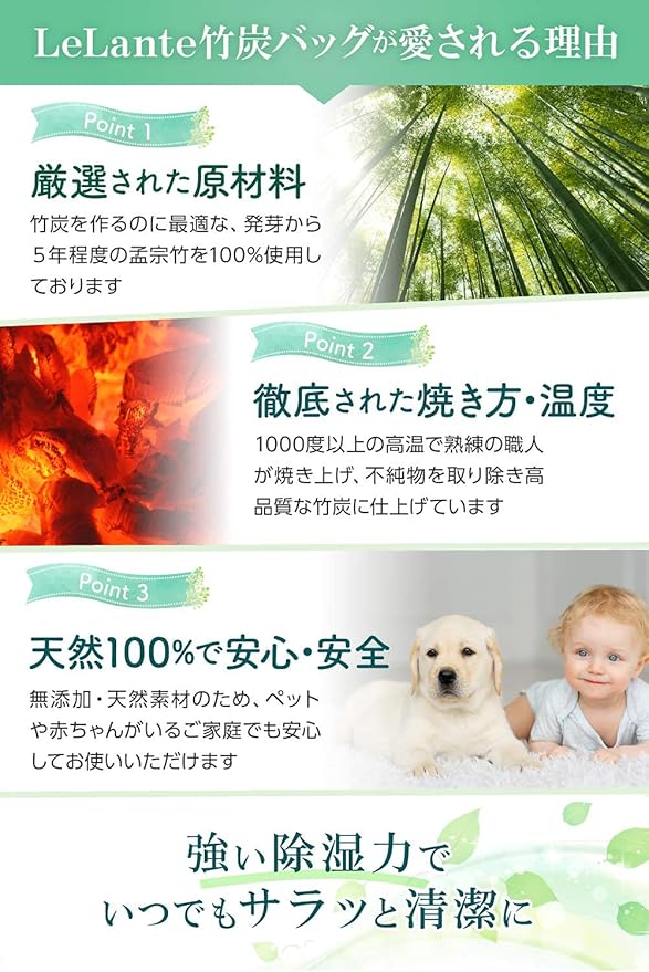 【安心・安全】100%天然由来の 消臭剤 除湿剤 なので、ペットや赤ちゃんがいるご家庭でも安心してお使いいただけます。