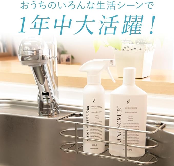 SANI-SHIELD サニーシールドAg+ 除菌スプレー クリーナー 中性 抗菌コーティング ウィルス 花粉 消臭 防カビ お掃除 洗浄 撥水 艶 ツヤ 手に優しい 古堅純子 銀イオン ペット臭 日本製 トリガー1本 サボン