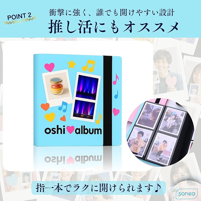 【大容量160枚収納】たっぷり160枚のチェキを収納可能。ホコリや汚れから写真をしっかり保護し、大切な思い出を長く美しく保管できます。サイズ:縦21 横17.5 幅2.5 cm