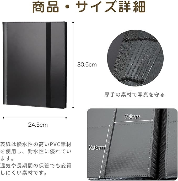 【大切な写真をしっかり保護】お気に入りのチェキや思い出の写真を傷や汚れから守る高透明ポケットを採用。表紙には耐久性、耐水性に優れたポリプロピレン素材を使用し、写真を長期間にわたって保護します。