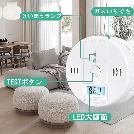 【ポータブルで使いやすい】一酸化炭素チェッカー日本製は再配線なしに取付けやすく、壁または天井に一酸化炭素警報を取付けることができます。電池(含む)で電源を供給し、ソケットは必要なく、停電に影響を受けず、家族の安全を確保するために一酸化炭素レベルを継続的に監視できます。