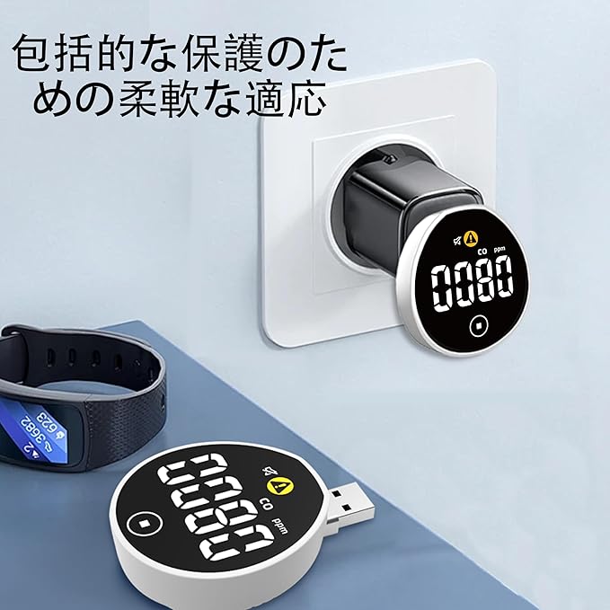 ♀️【USB給電式COモニター】車中泊やキャンプに最適なコンパクト設計。5V-1A対応でキャンピングカーでも簡単使用できる、耐久性に優れた小型携帯用の一酸化炭素チェッカーです。