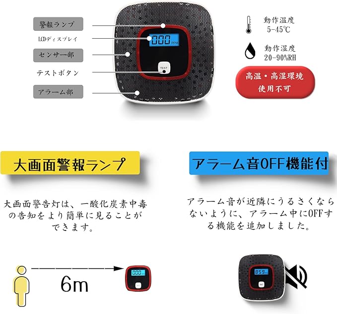 LAMB 一酸化炭素チェッカー キャンプ用 一酸化炭素警報器 テント用 音声案内 COアラーム 防災グッズ キャンプアラーム 電池付き メッシュ袋 収納ケース 車中泊 中毒防止 (収納ケース+単四電池3本+メッシュ袋) 1年間HOT保障付き
