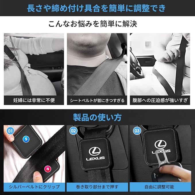 OuTLife シートベルトカバー マグネット式 車用 装着簡単 長時間ドライブ ずれ防止 肩こり軽減 車載アクセサリー パッド 車内グッズ 車内快適グッズ プレゼント 車便利グッズ ドライブグッズ 車用品 取り付け簡単 快適装着 (レクサス)