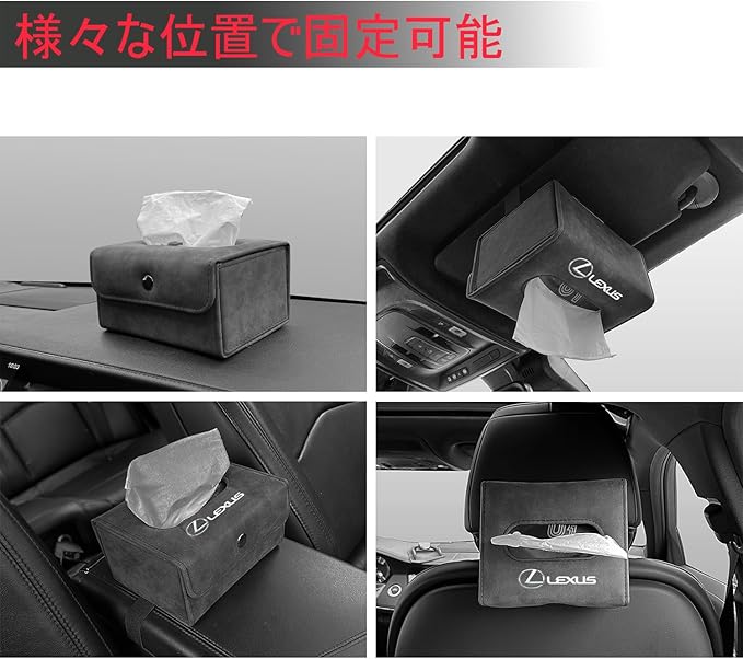車用ティッシュケース,グレー ティッシュケース ホームユース ティッシュボックス 車 ティッシュカバー サンバイザー取付 折りたたみ可能 家庭用便利グッズ ワンタッチ取付 レザー 1個入り(レクサスに適し)