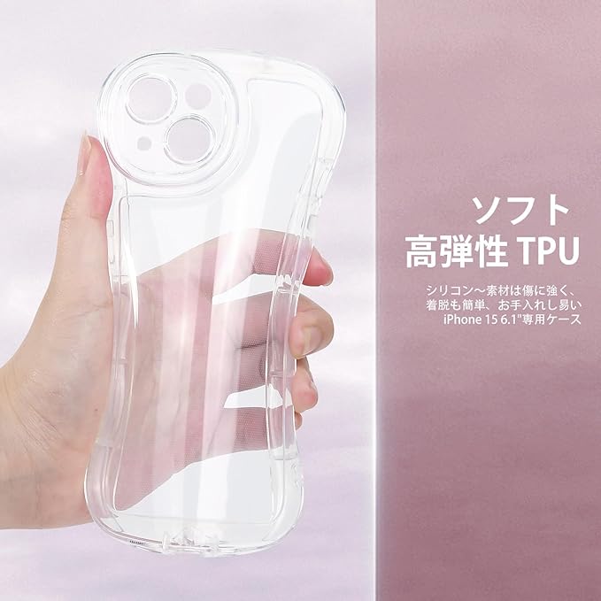 ♥【ウェーブ湾曲縁&TPU肌触り】湾曲したエッジにより握りやすくなっています。アイフォン iPhone 15 透明 ケースは滑らかな液体シリコンゴムと柔らかいTPU製で、耐傷性、耐指紋性、耐衝撃性に優れ、取り外しも簡単,お手入れし易い。