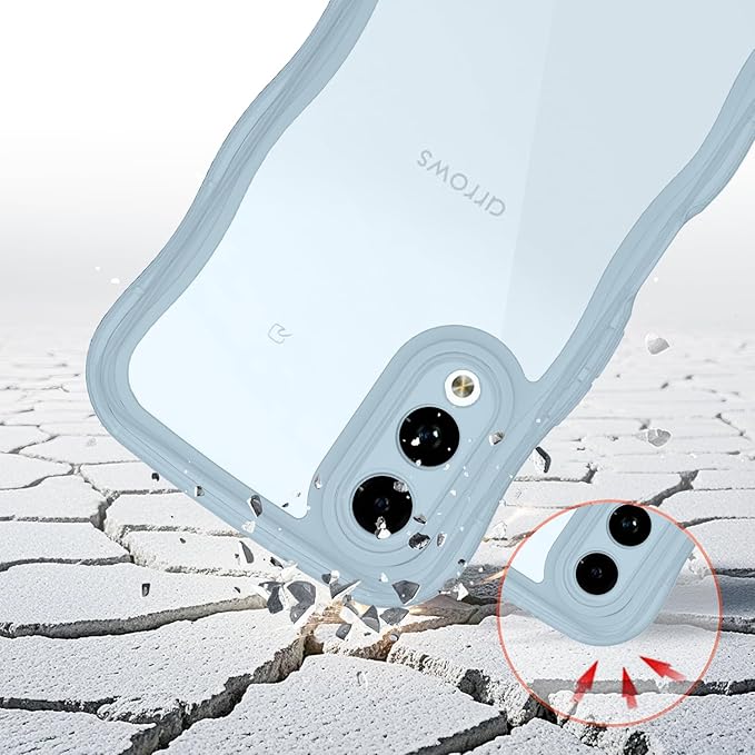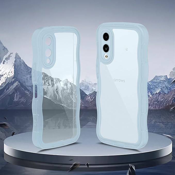 Arrows WE 2/F-52E/F52E用ケースリング付き Arrows We2 F-52E ウェーブ マグセフ 可愛い マツと感 TPU 耐衝撃 超軽量 極薄 透明 黄ばみなし 滑り止め Arrows WE 2/F-52E/F52Eかわいいうねうね 韓国 人気 ストラップホール付きなみなみ カバー・Arrows WE 2/F-52E/F52Eクリア ブルー