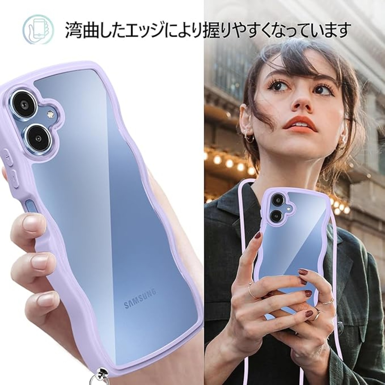 Galaxy A25 5G ケース/SC-53F ケース クリア ショルダー ギャラクシー A25 5G カバー うねうね 透明 人気 かわいい 耐衝撃 スマホケース ストラップ付き 取り外し可能 長さ調整可能 首かけ 肩掛け 薄型 軽量 TPU ワイヤレス充電対応(パープル)