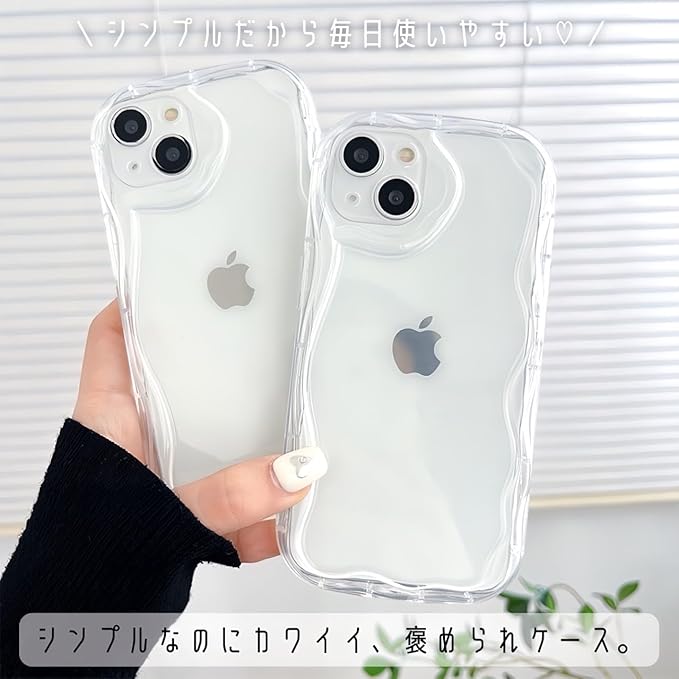 ✨【シンプル・ナチュラルなデザイン】 スリムで無駄のない透明クリアケース。 iPhone本来のデザインを引き立てるミニマルな仕上がりで、装着してもゴツくならず、洗練された印象に。 立体感のある波のようなフレームが可愛く、左右非対称なウェーブ模様がナチュラル。 シンプルに大人可愛く、どんなシーンにも馴染むデザイン
