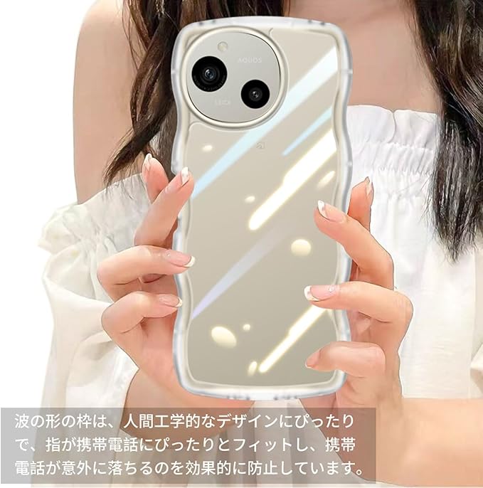 AQUOS R9/R10 かわいい ケース クリア 波状フレーム うねうね 耐衝撃 SH-51F/SH-51EE スマホケース 透明 滑り止め 人気 可愛い 女性用 女子向け アクオス R9/R10 カバー 落下防止 ワイヤレス充電対応 (クリア)