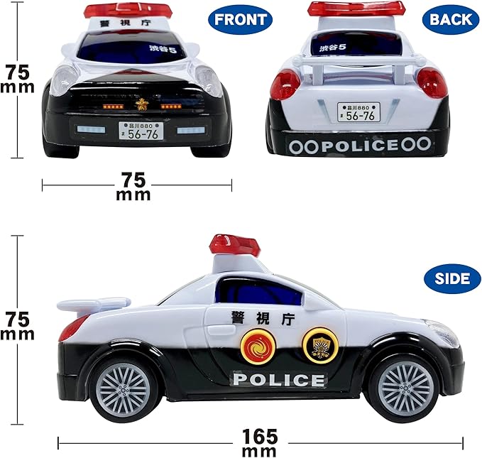 【憧れのパトカーがおもちゃに】みんなの町を守ってくれる、あのかっこいいパトカーが、ボタンを押すと「出動します!」「直進します!」「止まりなさい!」としゃべり出すおもちゃです。正義の味方パトカーで悪い奴を捕まえよう!
