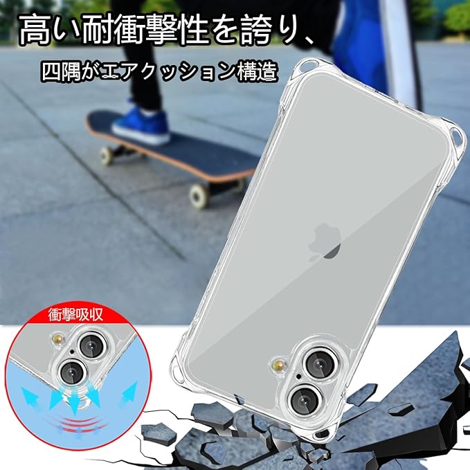 【対応機種】iPhone16専用ケース。側面の衝突防止ストリップ,それぞれ違う角度でコンクリートに落下させても本体は綺麗に無傷。※ご注意:ご購入前に携帯電話の型番をご確認ください。