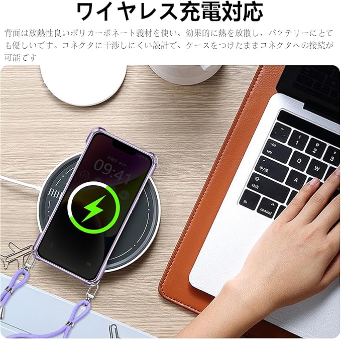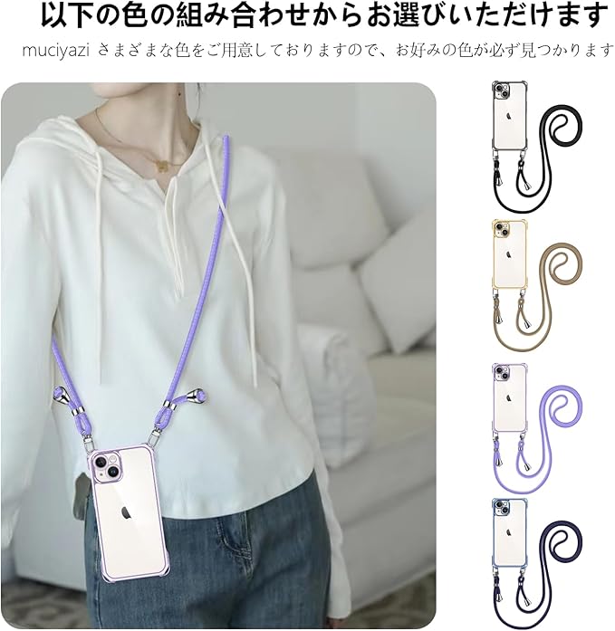 iPhone 14 ケース クリア ショルダー iPhone14 スマホケース アイフォン14 カバー 肩掛け 斜めかけ 縄掛けケース 透明 薄型 軽量 TPU 携帯ケース 紐付き 斜めがけ 織りストラップ付き 長さ調整可能 取り外し可能 落下防止 紛失防止 ワイヤレス充電対応(パープル)