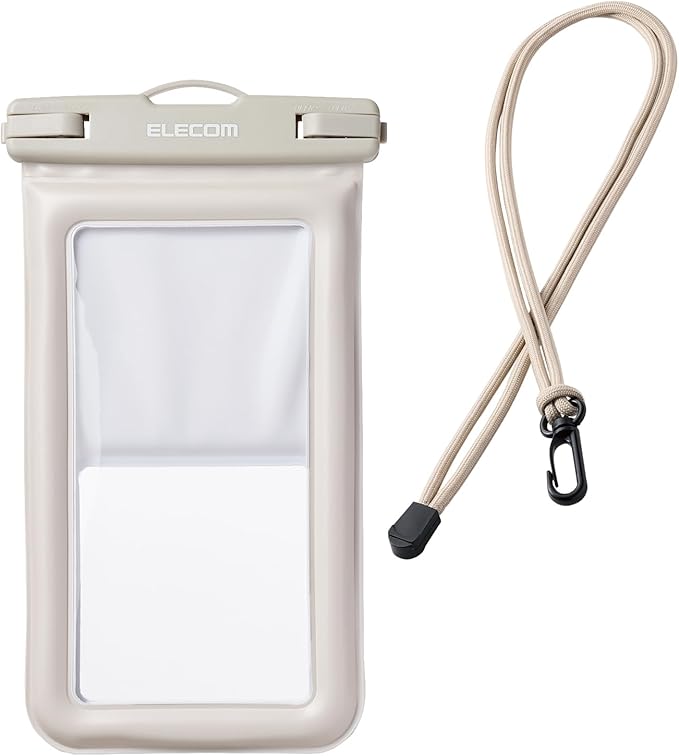 エレコム スマホ 防水ケース お風呂 海 首かけ 水中 操作不可 IPX8 顔認証 入れたまま操作可能 浮く 水没防止 ロックレバータイプ 6.9インチ以下のスマートフォン グレージュ P-WPSF05GB