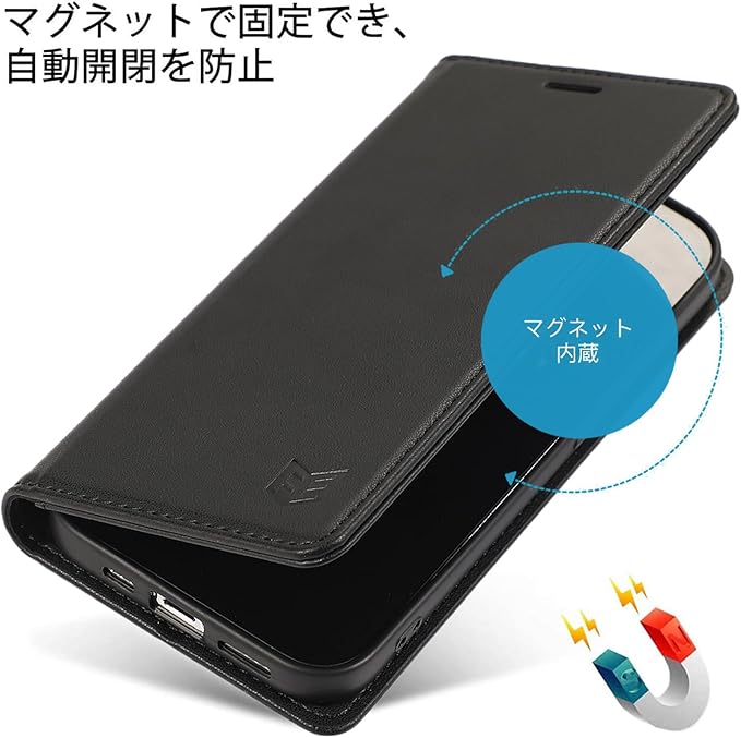 iphone16E ケース 手帳型 16e手帳型 ケース 耐衝撃TPU素材 カード収納 マグネット内蔵スタンド機能付き アイフォン16E 携帯カバー全面保護 あいふぉん 16E スマホケース 6.1インチ対応 ブラック